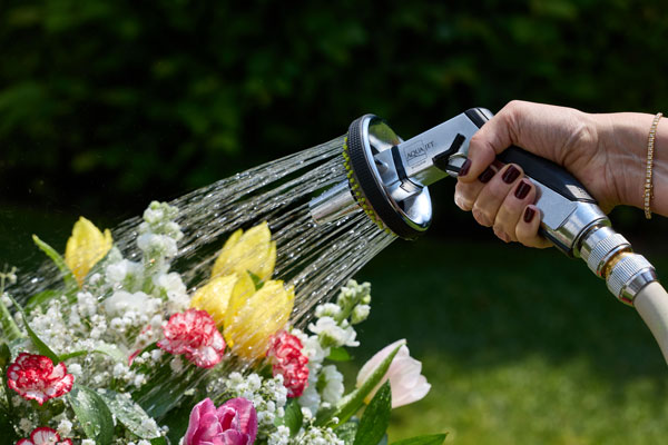 A szórófejen négy nyomáserősség és szórásminta közül tudunk választani: vízporlasztás, permetezés, esőszerű öntözés és erős nyomású öntözés. Növényeink vízigénye, a talaj tulajdonságai és vízvezető képessége határozza meg, hogy melyiket alkalmazzuk. Igény szerint tartós üzemre is állítható.
